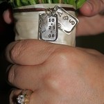 Due medagliette con scritto la data delle nozze, che siano quadrate o a forma di cuore, magari con i nomi degli sposi, agganciati con una collanina in argento è un’idea carina.