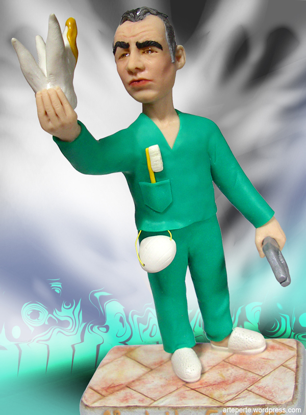 cake topper professione 16 cm, odontoiatra con dente e pinze in mano