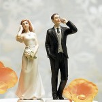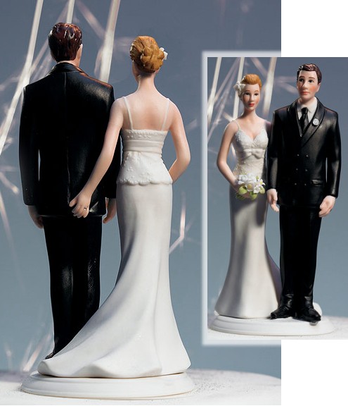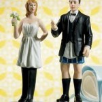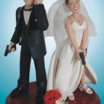 Gli sposi sono raffigurati in posizioni curiose, come nel cake topper dove lei palpeggia lui, in quello dove lo sposo è in mutandoni! Insomma tanto per rendere la cosa meno seria e più scherzosa. Sposi sulla moto, sposo all’amo e per quelli che veramente osano… che sono litigarelli o vogliono, come dire, utilizzare un pò di umorismo per scacciare l’ombra che incombe sulla maggior parte dei matrimonio odierni, statisticamente parlando, il cake topper con le pistole!