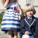 Elegantissimo il modello scivolato con spalle appena scoperte e impreziosite da una fila di fiori in rilievo che incorniciano il collo. Abiti ricamo in pizzo e macro fiori colorati che illuminano gli abitini bianchi da cerimonia. Lui è un principino che indossa completi tre pezzi, con giacca, gilet e cravatta in un blu classico, oppure adotta un look più casual, con giacche in lino naturale, a righe bianco/blu, portate su un pantolone a completo “spezzato”. La giacca blu è un classico è il piccolo Pignatelli junior la porta con naturalezza sopra una camicia bianca senza cravatta.