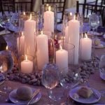 Se la vostra festa si svolge di sera, le candele sono la scelta giusta perchè la loro luce soffusa donerà un pizzico di atmosfera romantica. Nella gallery le vedete abbinate ai vasetti e alle pietroline, un ensemble perfetto per un matrimonio a tema mare.