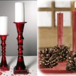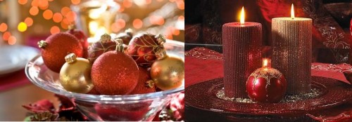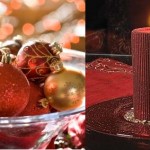 Iniziamo con le candele. Di colore rosso o bianco, con decorazioni in oro, posate su un piatto, ma anche in un vaso trasparente con perline e rametti di contorno per essere ancor più natalizie.
