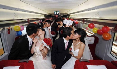 Celebrare le proprie nozze a 300 km all’ora? Un luso non certo per tutti. E infatti il gentile omaggio è arrivato dalle ferrovie cinesi che hanno organizzato il grande evento per tutto il personale costretto a ritardare i piani delle proprie nozze allo scopo di lavorare giorno e notte e aiutare l’azienda ad espandere la linea ad alta velocità Pechino-Shanghai.