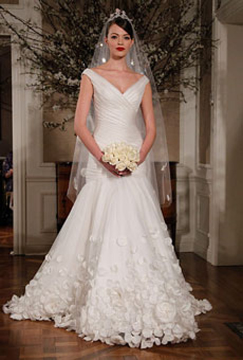Le spalle sono nude, il decollete scoperto, la vita fasciata, in molti casi completa la mise un bel velo lungo, ma leggero e impalpabile. Guardate la gallery e ditemi cosa ne pensate di questi abiti.