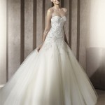 La semplicità di uno mette in evidenza il ricco dettaglio e viceversa. La collezione Manuel Mota è piuttosto ampia e dà una vasta scelta, tra cui molti abiti di pizzo, davvero insoliti, eleganti, ma anche particolari. Potete vedere l’intera collezione sul sito pronoviasus, ve li proporremo però anche in altri articoli.