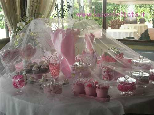 Il colpo d’occhio che offre, se ben allestita, è davvero notevole: su di un tavolo decorato ad hoc vengono posti porta confetti e porta caramelle di varie forme (ma anche tradizionalissimi se preferite) che ospitano confetti semplicemente bianchi (in questo caso si gioca sulle decorazioni) o coloratissimi.