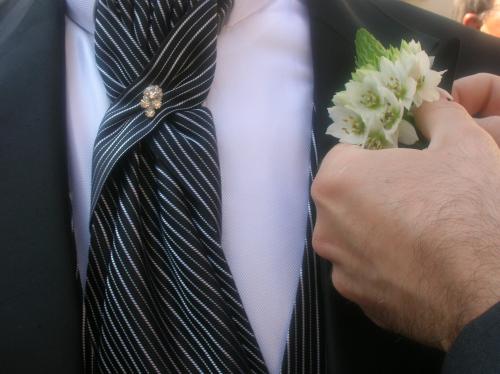 Andiamo dunque adesso a illustrare qualche altro dettaglio che si fa necessario conoscere in merito alla cravatta dello sposo. Il nodo, ad esempio. Ne esistono tantissimi: il nodo Ascot, il nodo Plastron, il nodo Windsor. Lo sposo non è particolarmente abile? Meglio allora preferire un nodo classico per evitare di sbagliare. Una regola da non dimenticare: per ottenere un nodo stretto e piccolo occorre scegliere una cravatta in tessuto leggero che non presenti una eccessiva imbottitura; per un bel nodo largo e morbido, la consistenza della cravatta dovrà essere necessariamente più corposa.