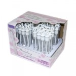 Quest’ultima è anche più elegante. Le potete sistemare in un vaso di terracotta, cristallo e altro materiale decorato e posizionato in un angolo strategico, di modo che gli ospiti le possano prendere. Il concetto è lo stesso dei coni di riso. In alternativa affidate i piccoli contenitori a qualcuno che li distribuirà al momento opportuno. Li volete acquistare? Nel sito Torontowedding li trovate. Se invece li preferite a forma di provetta, in un pacchetto ce ne sono 48 e costano circa dieci dollari.
