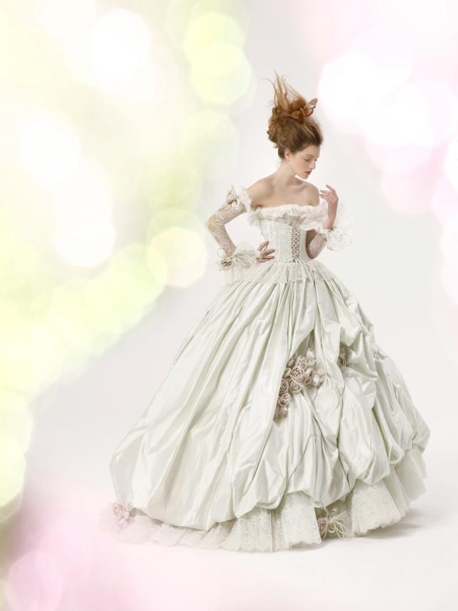 Un altro bellissimo vestito è della collezione “Le fate” di Amelia Cablanca. Questo lo definirei fantastico, non solo per il tema tipicamente da “favola”!. Dovessi sposarmi lo sceglierei per il romaticismo, ma anche perchè adoro questi modelli.