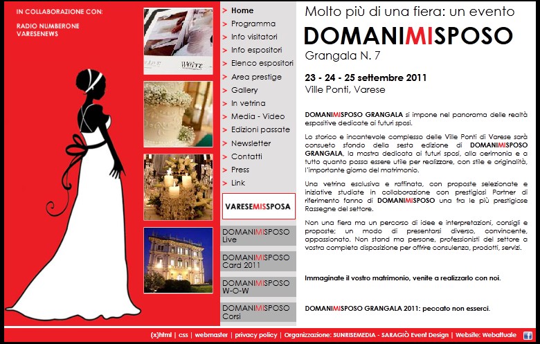 Qualche numero: la scorsa edizione la manifestazione richiamò oltre tremila visitatori e quest’anno le previsioni sono altrettanto positive. D’altronde, come si legge sul sito ufficiale, Domani mi sposo gran galà non è una semplice fiera ma un percorso di idee e interpretazioni, consigli e proposte, un modo di presentarsi diverso, convincente, appassionato.