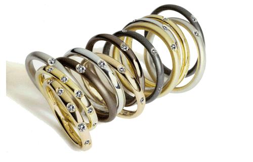 L’oro è il più classico metallo impiegato in gioielleria. Si addice a qualsiasi occasione, è la sua lavorazione che determina un’importanza piuttosto che un’altra. Dato che allo stato puro l’oro è troppo malleabile, è necessario indurirlo con una lega. Di solito si tratta di rame e argento – oro giallo o di nichel, palladio o argento – oro bianco. Ma esistono anche altri colori, come l’oro rosa, di lega argento e rame con maggiore componenza di quest’ultimo, l’oro rosso (4,5% argento, 20,5% rame), oppure l’oro blu legato con il ferro. Purezza, valore, lealtà sono questi i simboli che evoca l’oro.