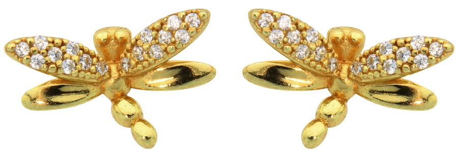 La collezione dei gioielli Misis Ermitage è composta da anelli, orecchini e collane il cui soggetto è la libellula. Sono realizzati in argento placcato oro 18k e impreziositi con zirconi e perle barocche.