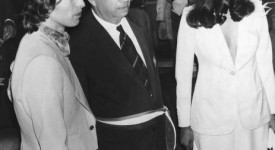 Marius Astezan, the Mayor of Saint-Tropez, stands between Rolling Stones singer Mick Jagger and his new bride Bianca Perez Morena de Macias during their wedding at Saint-Tropez Town Hall, 12th May 1971. The civil ceremony was followed by a religious one at the Chapel of St Anne. (Photo by Keystone/Hulton Archive/Getty Images)