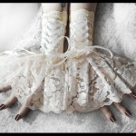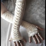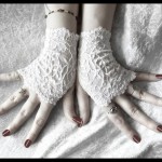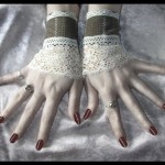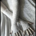 Non mancano i guanti in pizzo. Sono però tutti senza dita in modo che la sposa non debba toglierli per farsi infilare il classico “anello al dito“!, ma possa tenerli su per tutta la cerimonia. Alcuni sono troppo particolari e ingombranti per poterci mangiare e in quel caso vi suggerisco di toglierli altrimenti li avrete continuamente nel piatto. Li trovate nel negozio zenandcoffee su etsy.