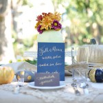 Quindi, ricapitolando: zucche, perline, strass, nastri e quanto volete utilizzare per decorare le vostre zucche. Potete anche prendere dei bastoncini di legno, lunghi stuzzicadenti e utilizzarli come segnaposto infilando un’estremità nella zucca e puntando il cartoncino con il nome dell’ospite dall’altro.