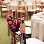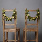 Se invece siete alla ricerca di qualcosa di alternativo, non ditemi che non sono deliziose le ghirlande di mele rosse montate su una sedia di legno, al quale potrete aggiungere un cartellino in carta riciclata, da usare come segnaposto, attaccato alla sedia. E sempre in tema di ghirlande, il tralcio di fiori gialli e foglie verdi fatti con la carta. In questo caso per un’ottima riuscita, la sedia deve essere minimale e in legno grezzo.