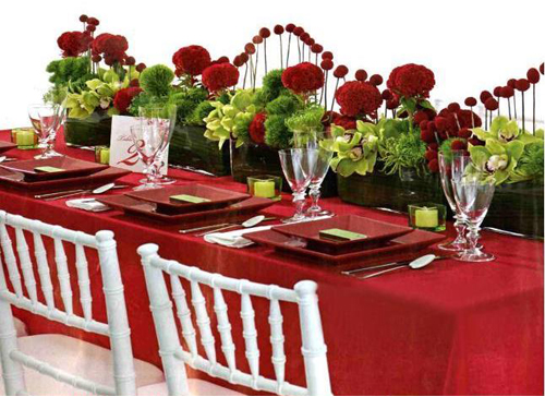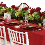 La sposa potrebbe indossare una cintura rossa sull’abito candido e anche avere un bouquet bianco e rosso. Le sedie in bianco vengono decorate con fiocchi rossi che danno loro un tocco di colore.