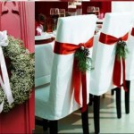 Vischio e pigne possono completare le decorazioni delle sedie così come essere protagonisti nei centrotavola. I bicchieri possono essere di un bel rosso vivo che crea uno stacco perfetto con la tovaglia candida.