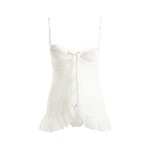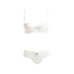 Non mancano ovviamente le seducenti parti basse: un reggicalze e l’immancabile giarrettiera. Arricchiscono la linea inoltre un’ eterea sottoveste lunga, con un bellissimo incrocio sulle spalle ed un originalissimo pagliaccetto in chiffon e jersey che rappresenta l’assoluta novità della collezione, sexy e dedicato ad un pubblico di giovani spose.