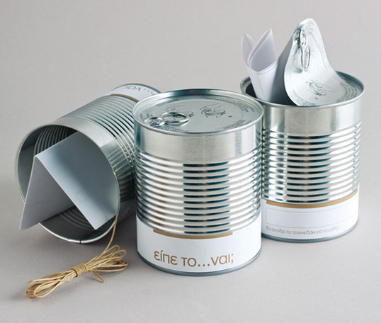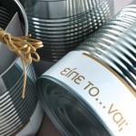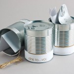 Leggendo il titolo vi siete fatte un’idea. Sono partecipazioni alle nozze ed ebbene sì, in lattina, non lo trovate originale? E poi le lattine, portate al matrimonio, potranno essere utilizzate con lo spago in dotazione, da mettere legate al paraurti dell’auto dello sposo.