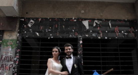 A couple celebrates their wedding as people demonstrate on Taksim square on June 2, 2013, a day after Turkish police pulled out of Istanbul’s iconic square following a second day of violent clashes between protesters and police over a controversial development project. Thousands of demonstrators flooded the site as police lifted the barricades around the park and began withdrawing from the square. What started as an outcry against a local development project has snowballed into widespread anger against what critics say is the government’s increasingly conservative and authoritarian agenda. AFP PHOTO/GURCAN OZTURK (Photo credit should read GURCAN OZTURK/AFP/Getty Images)