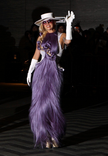 US pop diva Lady Gaga poses for photographers after arriving in Hong Kong on April 28, 2012. The eccentric star, who has a record number of almost 22 million followers on Twitter, kicked off her world tour in Seoul on April 27 and will visit Hong Kong, Japan, Singapore, New Zealand and Australia. AFP PHOTO/Dale de la Rey (Photo credit should read DALE de la REY/AFP/GettyImages)
