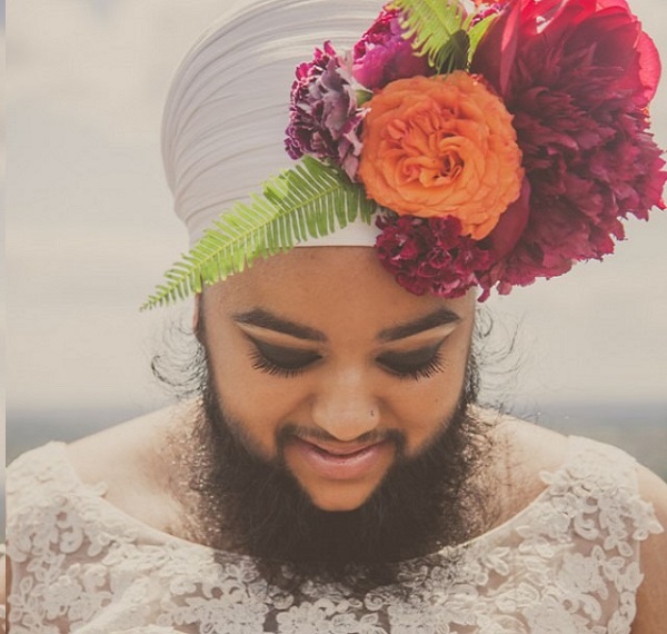 Il sito della rivista di nozze alternativa Rock n Roll Bride ha mostrato un servizio fotografico originale e diverso dove Harnaam Kaur è stata immortalata con abito bianco, fiori e barba!
