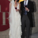 Stile elegante e classico per Andrés Iniesta che ha sfoggiato un completo scuro leggermente gessato, un gilet in seta blu, camicia bianca candida e una cravatta azzurra in fantasia. Emozionata ed eterea la sposa vestita con un abito bianco leggero e impalpabile con scollo ampio a V sul petto e apertura sulla schiena; pizzo e organza hanno invece creato un abito quasi angelico intervallato da un gioco di pizzi fiorati e tessuto liscio sul petto e sulla gonna. Particolare il velo: la sposa ha indossato una cuffia in pizzo legata lateralmente e dalla quale, come una pioggia, si apriva una cascata di morbide decorazioni e tessuti candidi.