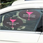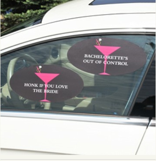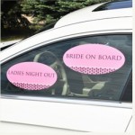 Potete sceglierne i colori ed eventualmente anche le scritte sono personalizzabili. Ce ne sono “sposa a bordo”, un po’ sullo stile “bebè a bordo”, ma anche altri adattissimi alle feste di addio al nubilato.