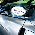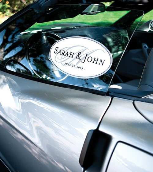 Trovate anche fiocchi per auto e altri adesivi, sempre per la macchina, con frasi dedicate alla sposa, ma anche altre etichette con entrambi i nomi degli sposi.