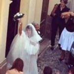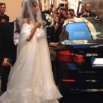 Oggi vogliamo dedicare le nostre attenzioni alla sposa. Elisabetta Canalis aveva già spifferato il modello  del suo abito mostrando a tutti il bozzetto, realizzato dallo stilista italiano Alessandro Angelozzi, appena pochi giorni prima delle nozze. Si tratta di un vestito interamente ricoperto di pizzo e decorato con cristalli Swarovski. La sposa però è apparsa completamente coperta dal velo e da un’ingombrante stola che teneva sotto braccio e che ha impedito ai comuni mortali la vista di tutti i dettagli dell’abito.
