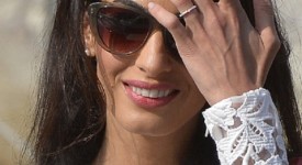 US actor George Clooney’ wife, Amal Alamuddin wearing her wedding ring, stands on a taxi boat on the Grand Canal on September 28, 2014 in Venice. Hollywood heartthrob George Clooney and Lebanese-British lawyer Amal Alamuddin married in Venice on Saturday September 27, 2014 before partying the night away with their A-list friends in one of the most high-profile celebrity weddings in years. “George Clooney and Amal Alamuddin were married today (September 27) in a private ceremony in Venice, Italy,” Clooney spokesman Stan Rosenfield said. The announcement came as a surprise as the pair were not expected to officially tie the knot until Monday, though they are still tipped for a civil ceremony at the town hall to officialise the marriage under Italian law. AFP PHOTO / ANDREAS SOLARO (Photo credit should read ANDREAS SOLARO/AFP/Getty Images)