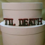 Che ne dite, ad esempio di usare la coppia di scheletri in abito da sposi per le vostre partecipazioni o per realizzare l’invito alla festa? Anche il cake topper che recita fino alla morte non è affatto male.