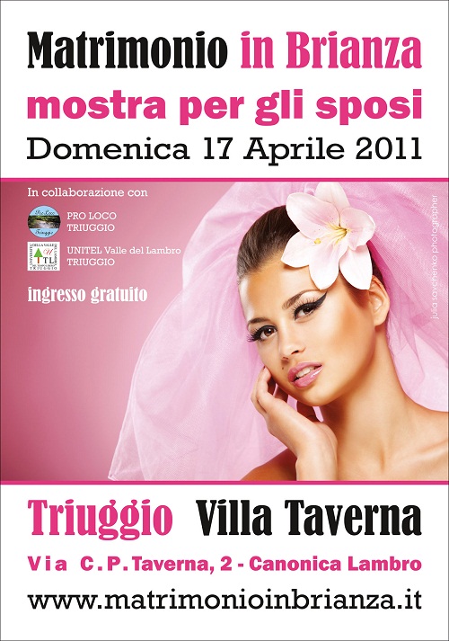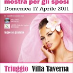 Domenica 17 Aprile 2011 dalle ore 10:00 alle ore 21:30 si terrà l’evento Matrimonio in Brianza che è la prima edizione ed è dedicato agli sposi con ingresso gratuito a Villa Taverna a Triuggio, una prestigiotissima ed elegante rassegna per gli sposi.