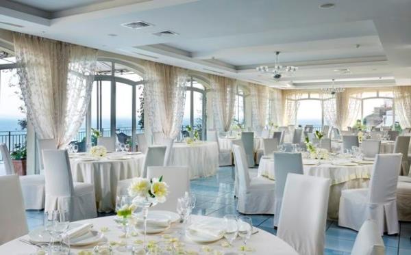 L’Hotel Raito si affaccia sul Golfo di Salerno e qui potrete gustare le migliori delizie gourmet tipiche della tradizione culinaria mediterranea con un ricco buffet di dolci. Anche qui da quest’anno c’è la possibilità di celebrare il matrimonio civile nel contesto della Costiera Amalfitana, invidiato da tutto il mondo! Con un massimo di 100 invitati il ricevimento si potrà svolgere a bordo piscina per rendere il tutto ancora più elegante.