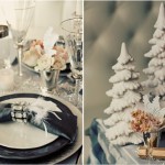 Volete rendere magica la vostra tavola nuziale invernale? Giocate con i glitter e gli strass che potranno essere inseriti nella composizione florale o sul tavolo, sparsi su una tovaglia candida come se fosse rugiada mattutina. Bianchi anche i fiori e le stoviglie che dovranno riflettere il magico candore della neve che, con un po’ di fortuna, renderà uniche anche le vostre fotografie.