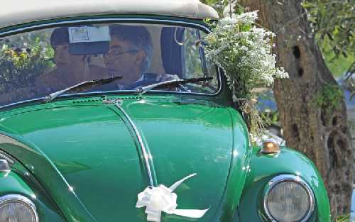 Matrimonio Moratti: la sposa e il padre della sposa arrivano in maggiolino verde