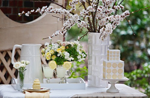 Anche giallo e bianco creano perfette composizioni, in fin dei conti quest’ultimo è il colore del matrimonio per antonomasia. Non perdete quindi l’opportunità di ragglegrare un matrimonio tutto in bianco con i colori e i fiori della primavera.