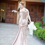 Ovviamente, come impone il tema, la sposa dovrà scegliere un abito a sirena, dando magari spazio a dettagli luccicanti e glamour. L’idea perfetta sarebbe quella di un abito con lunga coda.