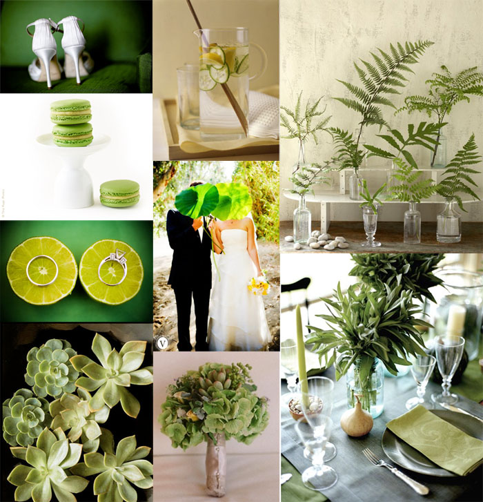 Il colore di base è il verde, green in inglse/americano difatti vuol dire verde e fa pensare alla natura, a tutto ciò che ne fa parte e se non riuscite a figrarvi come potrebbe essere un matrimono “in verde” guardate la gallery.