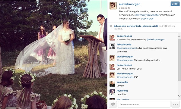 Le piccole damigelle invece indossavano abiti Alexander McQueen, mentre le amiche della sposa, le grandi damigelle, indossavano abiti Prada.