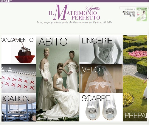 L’apertura del sito è avvenuta in concomitanza con la festa di San Valentino, come omaggio a tutti gli innamorati. Conservando intatto lo spirito del giornale, che rispetta e rende attuali le regole del bon ton, Matrimonioperfetto.it – che costituirà una nuova area all’interno di Style.it, ha come intento una visione a 360° del matrimonio, dall’abito ai fiori, dai gioielli al viaggio, senza tralasciare la gestione del budget e i consigli per controllare che anche lo sposo non commetta errori.