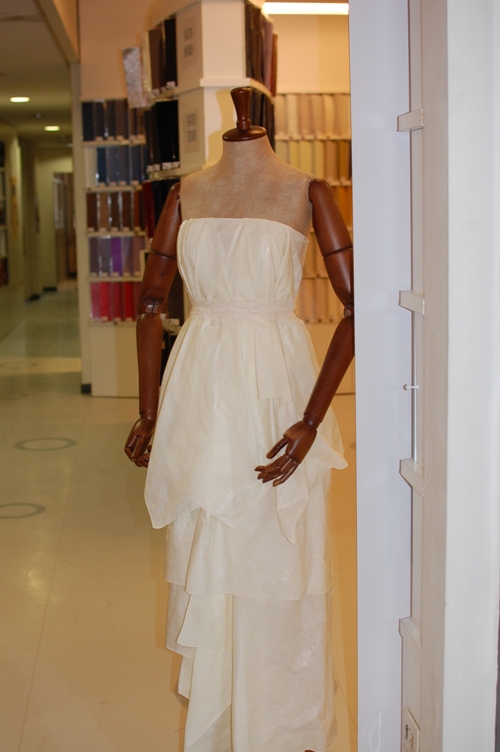 Gli abiti presentati da Gori erano realizzati artigianalmente in mosaici di tessuto, tessuto di marmo e di carta. Un’idea originalissima e particolare.