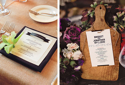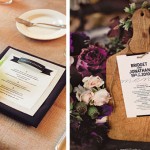 Per nozze più rustiche il menù viene legato con una cordicella ad una piccola assetta da cucina. Un’idea simpatica ed economica. L’altra idea è decisamente più costosa, soprattutto se ve la fate realizzare da qualcun altro.