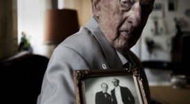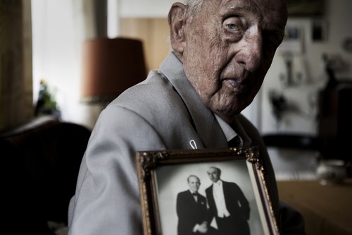 Axel Axgil, 94, holds a photograph of him and his now deceased partner, Eigil Axgil, in Copenhagen, Denmark on May 20, 2009. They were the first same sex couple in the world to enter into a civil union. The Axgil couple, whose last name is a combination of their first, together with ten other couples, married in Denmark on Oct. 1, 1989 in what was a worldwide media event.
