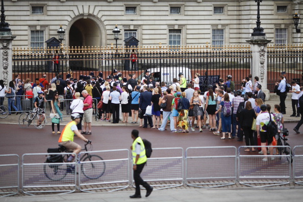 LONDON, ENGLAND – JULY 23: Members of the public gather outside Buckingham Palace to read the easel displaying the announcement of the birth of a son to The Duke and Duchess of Cambridge on July 23, 2013 in London, England. The Duchess of Cambridge has given birth to a baby boy yesterday at 16.24 BST. (Photo by Dan Dennison/Getty Images)