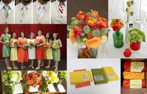 Nozze a colori, verde giallo e arancio