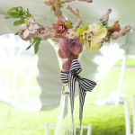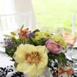 Ai fiori colorati si possono abbinare nastri a righe o a quadretti, persino a pois sottili e in raso oppure di stoffa e cotone. Come centrotavola potete utilizzare vasi di vetro trasparente.