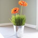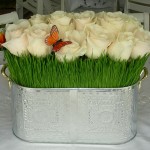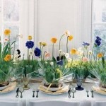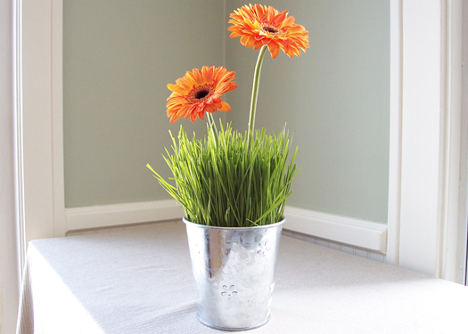 Potete mettere sul fondo dei vasi della terra e far crescere l’erba oppure farla crescere altrove e poi tagliarla e inserirla nei vasi solo per bellezza, ma in questo modo non potrà essere conservata. Poi decoratela con alcuni fiori recisi, come ad esempio delle rose bianche, delle gerbere o ancora tulipani.