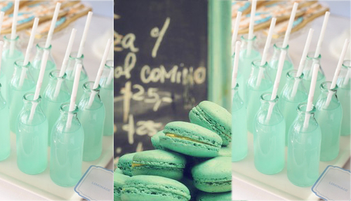 Bicchieri e bottigliette verdi un po’ vintage, nei quali offrire una bella menta fredda come aperitivo, cannucce colorate, tovaglie a tema e magari ricevimento all’aperto sono la scena ideale.